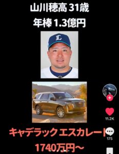具体的な車種がわからなくても、「これだけの活躍をしている山川穂高選手なら、どのくらいの価格帯の車に乗っていてもおかしくないのか」という目安は、年俸からある程度イメージすることができます。